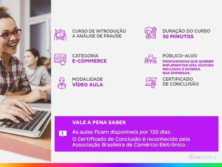 Público Alvo: esse curso destina-se a profissionais de qualquer área do conhecimento que já operam no e-commerce, que querem iniciar a operação de uma loja virtual ou que querem mudar de área profissional e necessitam adquirir habilidades sobre como receber pagamentos nas vendas online e analisar fraudes.