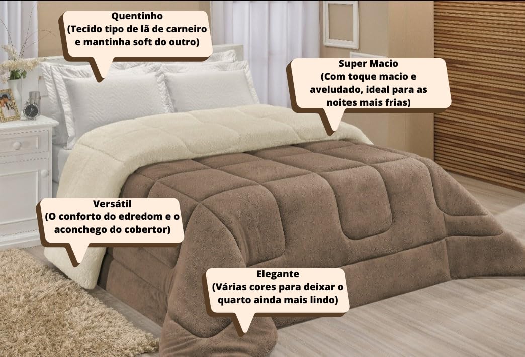 - Aconchego e Maciez Premium: Enchimento 100% poliéster, toque felpudo, ideal para noites frias e relaxantes.