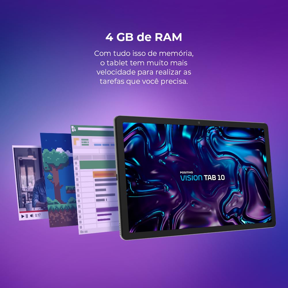 311 avaliações para Tablet Positivo Vision TAB 10 4GB RAM 128GB Armazenamento, Octa-Core, 13MP + Selfie 5MP, Bateria 6000mAh, Tela 10.1“ HD, Wifi AC e 4G, Full Lamination